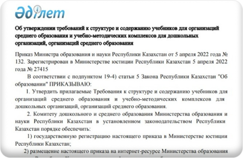 арналған оқулықтар мен оқу-әдістемелік кешендердің құрылымы мен мазмұнына қойылатын талаптармен таныса аласыз